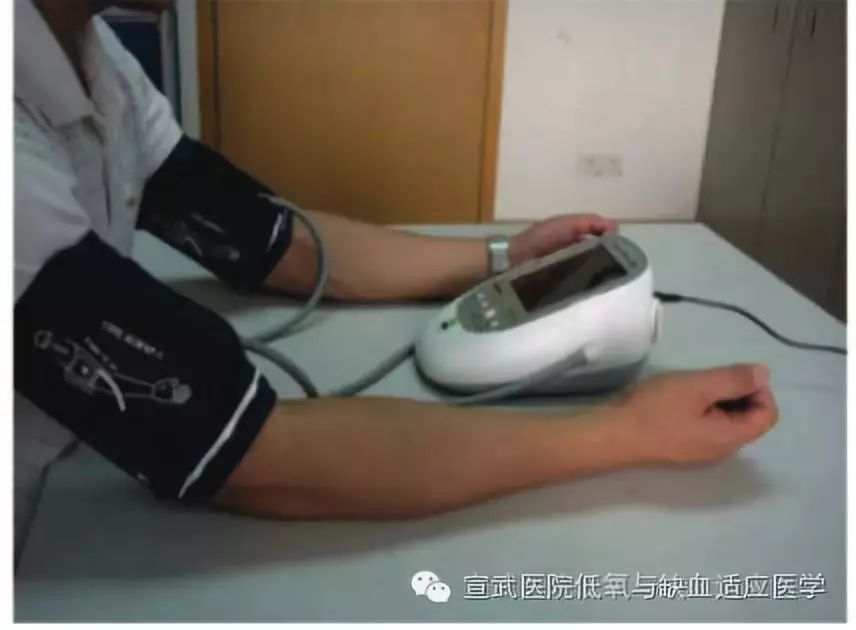 远隔缺血适应训练,其操作方法是:患者取平卧位或坐位,双上肢与心脏处于同一水平面,将袖带缠绕于一侧上臂中上段,气囊快速加压至200mmHg,维持5分钟,随后释放气囊压力休息5分钟为一轮。每次连续重复5轮,共45分钟,每天做两次。建议上午、下午各1次,双侧上肢同时或交替进行,6个月为一个疗程。